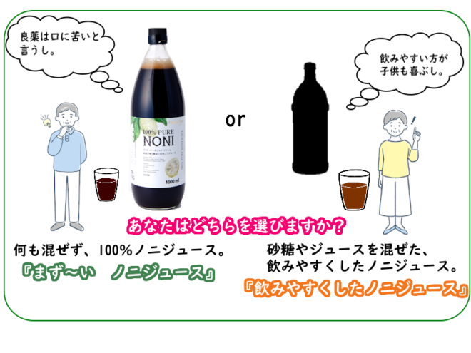 青汁は我慢しても飲むのに、ノニジュースは美味しく飲みたいというのはどうでしょうか?