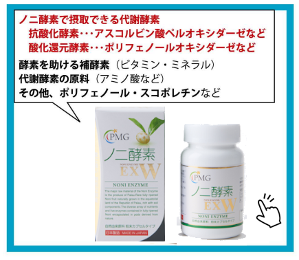 残念ながら、ノニジュース『100%PURE NONI』は熱処理をする過程で本来ノニに含まれる酵素は死活してしまっていますが、ノニサプリ『ノニ酵素EXW』は特殊製法で粉末化することによって、財団法人日本食品分析センターの分析試験においても抗酸化酵素が確認されています。