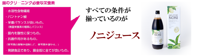 腸内クリーニングに必要な栄養素が揃っているのがノニジュースです。
