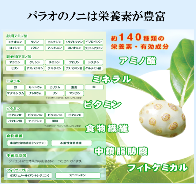 中でもパラオ共和国のノニは、最適な地理的条件や気象条件、含まれる栄養成分の量から、高品質として知られてきました。